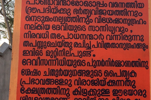 The Aikunnu Pandavagiri Devi Kshetram (Temple), situated in Venginisseri village of the Paralam panchayat, is most famous among the 108 Durga temples consecrated by Parasurama in the Treta Yuga.